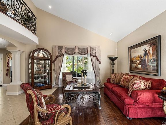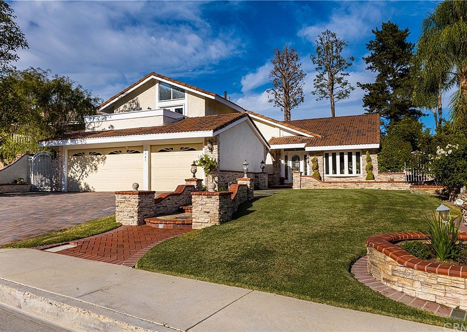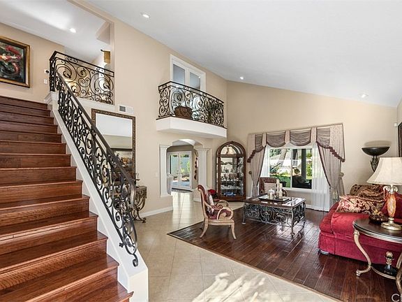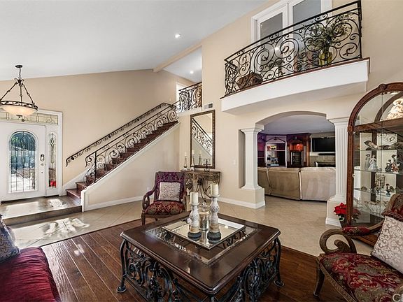 Highly upgraded family home in the wonderful Anaheim Hills community of Westridge situated on a spacious lot. This naturally bright-lit open concept home offers 4 bedrooms and 3 bathrooms with many upgrades throughout. The 3 car garage with epoxy floors includes extra built-in storage space. Stepping through the welcoming doors, the first level displays a formal living room, and dining area open to a remodeled kitchen with granite countertops, a wine bar and cooler, as well as an additional eating area. The downstairs also features custom built-in cabinetry in its generously sized family room with a fireplace, as well as a downstairs bedroom and bathroom. From the family room, walk out double glass doors to the backyard displaying a large covered patio, a luscious grassy area, and a private fence surrounding the property. The intricately designed wrought iron staircase leads you upstairs to a home office with built-in cabinets, an additional bedroom, a newly remodeled bathroom, and the spacious master bedroom. The master features a large private balcony, a generous walk-in closet, and a large bathroom with dual sinks. With ample room for entertainment throughout, some additional features of this home include dual pane windows, tile flooring, a security system, new water heater, new air conditioner, newly paved stone driveway, LED lighting throughout, multiple doors leading to the spacious side yard and backyard, and so much more!