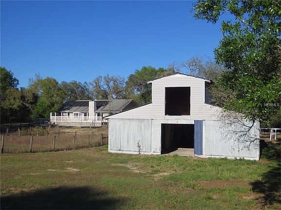 Rambling county home with a sun-warmed pool on 5.4 acres in East Hernando County. This 2001 concrete block home has 4 bedrooms, 2 baths, a formal dining room and a great room with a fireplace. The kitchen with breakfast bar and breakfast nook are just off the main room. There is an over-sized 2 car garage, pole barn, shed and an 8 stall center aisle horse barn with hay loft, and a wood fenced arena and fencing and cross fencing for your horses. The location is just south of SR 50 between I-75 and US Hwy 301 in beautiful Hernando County