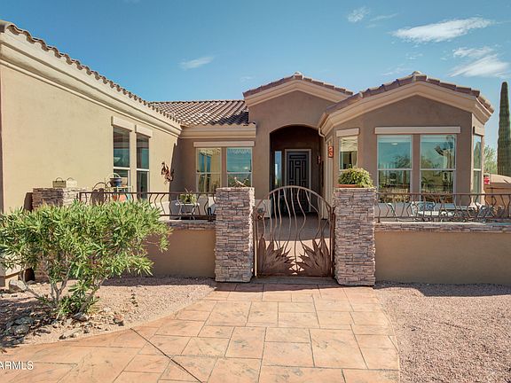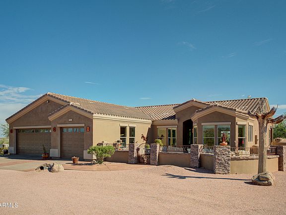 Extraordinary custom home on 3.3 acres with breath taking mountain views! A dream come true for lovers of privacy, entertainers, animal lovers (horses welcome) gardeners (48X24ft screened garden house) ATV riders and hiker. Beautiful SW style custom iron gate lead to entry courtyard, entry leads to great room w/ fireplace, picture windows to enjoy the private open views. Expansive gourmet Kitchen w/ gas grill, 8' wood cabinets & granite flows to the breakfast nook. 16'' ceramic tile flows throughout home. Back door opens to large covered entertainers patio with bubbling stone fountain & beautiful landscaped 97X87 fully fenced yard with berm & iron fencing. + Large SW design iron gate opens to RV hookup of water, septic & electric. Spacious living area of 2178 sq ft and 3126 Total sq ft. Office / bedroom option, on request sellers will be converted office to 3rd bedroom at no cost to buyers. Peaceful main suite features fireplace, gorgeous wide mtn views, large bath w/ jetted soaking tub, tiled & glass surround shower, 2 separated sinks & cabinets, private toilet room, walk-in closet. Live in your private desert retreat just 10 minutes to shopping, hiking, horse trails, ATV riding & State Land is just across street! Men will love the extended 936 sq ft 3 car garage with many cabinets. *** SEE attached detail sheet on the many home assets and upgrades.