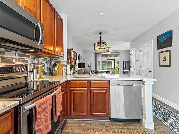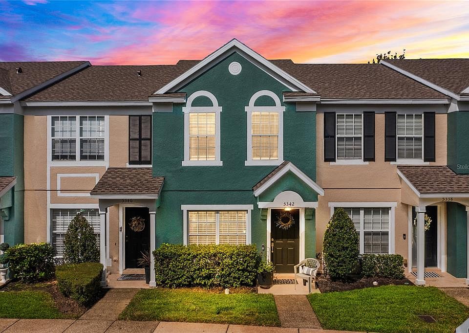 Under contract-accepting backup offers. Welcome to 5342 Hawkstone Drive, an impeccably maintained 2-story townhome in a quiet, homey, desirable gated community just minutes from I-4 and historic Downtown Sanford. This move-in-ready home features TWO primary bedrooms with private full bathrooms.  Perfectly located in the community just a short walk to the community mailbox, trash compactor & reserved parking space conveniently located in front of the unit making unloading groceries an absolute breeze. The roof and exterior paint were redone about a year ago, all covered by the low Homeowners Association monthly dues of $233.99. Spectrum TV, high-speed internet and access to a community pool are also included in monthly dues (Amazing, right?). Newer systems that add confidence: water heater installed (1 year ago); HVAC (2018) on a semi-annual maintenance plan, newer kitchen appliances & oversized washed & dryer. Could it get any better? It can! This home has NO CARPET ALL THROUGHOUT offering minimal maintenance! Almost all spaces feature Hamptons ceiling fans making cooling off easy peasy. The heart of the home is an airy kitchen featuring 42-inch solid-wood cabinets, a contemporary tile backsplash, granite counter tops with stainless-steel appliances. The kitchen flows seamlessly to the dining area and living room, creating the ideal setting for entertaining or cozy nights in. Large slider leads to a private screened in lanai featuring sun shade for effective air in cooling during summer months. The landscaped patio area that extends your living space outdoors, a perfect place for pets, plants, or grilling! Enjoy quick access to I-4 and a short drive to Downtown Sanford’s lively dining, breweries, and waterfront nightlife. Everyday errands are a breeze with Publix, Walmart, Target, restaurants, gyms, and childcare all just minutes away. This townhome blends style, comfort, and low-maintenance living—perfect for anyone seeking a lock-and-leave lifestyle. Schedule your private showing and experience the best of Sanford living!