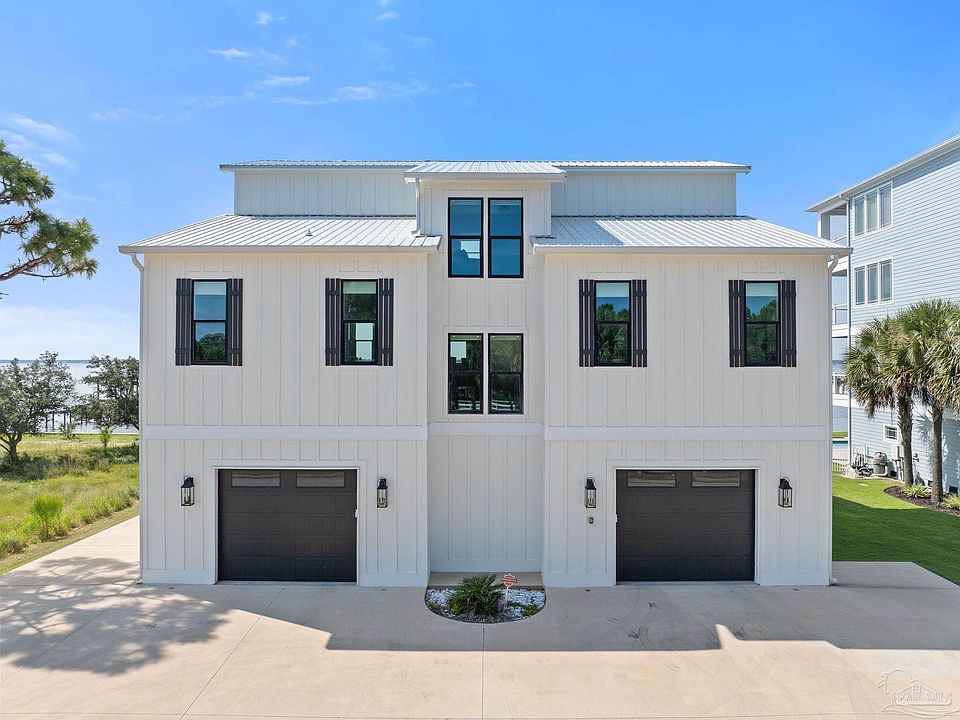 Experience the best of coastal living in this exquisite Bayfront home, just a 5-minute drive from the sugar-white sands of Perdido Key. Perfectly designed for both relaxation and entertaining, this residence blends elegant interiors with resort-style outdoor amenities. Step outside to an expansive 1,100+ sq. ft. covered balcony overlooking sweeping views of Perdido Bay, complete with an outdoor kitchen, fireplace, TV, and fenced backyard with sprinkler system. Enjoy your private dock with a covered sitting area or take a dip in the heated and chilled saltwater gunite pool. Inside, the chef’s kitchen shines with quartz countertops, gas range, farmhouse sink, wine chiller, and a massive walk-in pantry. A custom built-in bar with glass shelving and cabinetry complements the open living space, anchored by a cozy gas fireplace. The luxurious primary suite features direct balcony access, a built-in desk, spa-like bathroom with soaking tub, walk-in shower, dual vanities, water closet, and two walk-in closets. An exterior lift adds convenience, making it easy to transport groceries or luggage between floors. Guests will love the upstairs bonus bunk room and each spacious bedroom’s private en suite bath. Additional upgrades include custom Roman shades and drapes, tankless hot water heater, whole-house surge protector, and the option for furnishings to convey with an acceptable offer. This home offers a rare combination of waterfront tranquility, luxury design, and proximity to the beach—making it the ultimate coastal sanctuary. OPEN HOUSE...Sunday, September 7th...noon - 2pm.
