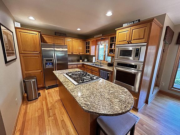 Charming 2-story Colonial in desirable location, perfectly situated between Racine and Kenosha! This beautifully maintained home features a spacious layout with a family room and living room connected by a double sided wood burning fireplace! New ''wood'' garage door, New carpeting, new A/C 23, new shed, freshly painted interior and exterior and new gutter guards. Finished basement is perfect for entertaining or relaxing. Enjoy the private park like backyard, ideal for gatherings or quiet evenings. The large garage and extended driveway offer plenty of parking and storage. Nestled in a peaceful neighborhood with easy access to the county bike tail, golf courses, and Petrified Springs Park. A straight drive out KR to hop on the interstate for a convenient commute to anywhere. A must see!