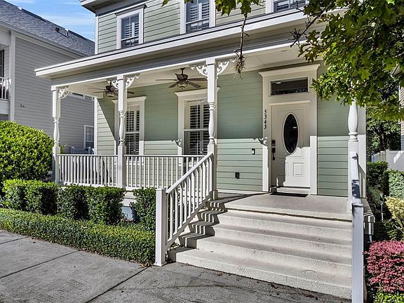 Welcome to 5343 Brady Lane — a beautifully updated David Weekley home in the heart of Baldwin Park, offering charm, privacy, and a picture-perfect front porch overlooking a peaceful park with no homes directly in front. This 3-bedroom, 2.5-bath home spans 1,838 sq ft and features a spacious, light-filled layout with thoughtful upgrades throughout. The inviting front porch is ideal for rocking chairs or a swing, setting the tone for the warmth that continues inside. The first floor boasts engineered hardwood flooring, plantation shutters, a formal dining room, and an open-concept living area with built-in surround sound. The newly renovated kitchen is a standout, featuring marble-like quartzite countertops, solid wood cabinets, new Samsung Bespoke appliances, a pantry, and a bar-height counter with seating for four. A convenient half bath completes the first floor. Upstairs, the laundry room comes equipped with a brand-new washer and dryer. The spacious primary suite includes a custom built-in closet system, an additional walk-in closet, and a beautifully renovated ensuite bath with double vanities. Two additional bedrooms share an updated hall bath with a new vanity, toilet, and LED mirror. The backyard is a private retreat—fully fenced, low-maintenance, and beautifully designed with pavers and a grassy area perfect for pets. No rear neighbors add to the sense of privacy. A two-car garage with built-in shelving provides excellent storage. Major updates include: Roof (2023) and A/C (September 2025 installation). Located in one of Orlando’s most sought-after neighborhoods with top-rated schools, community pools, parks, shops, and dining—this Baldwin Park home is truly move-in ready and offers the best of both comfort and convenience.