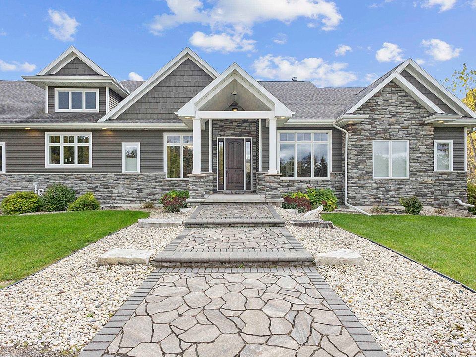 Experience luxury living in this stunning custom-built home set on over 5 peaceful acres. Built in 2016 by Lemense Quality Homes, this exquisite property showcases exceptional craftsmanship and timeless design. Step inside to find rich wood floors, granite surfaces throughout, and an open-concept floor plan designed for both comfort and entertaining. The chef’s kitchen features high-end finishes, custom cabinetry, and a large island all with stunning views including a serene 1 acre pond. Enjoy the convenience of the additional garage that comfortably fits an RV and 4 vehicles including a workshop and additional storage above. This property perfectly combines luxury, privacy, and nature.