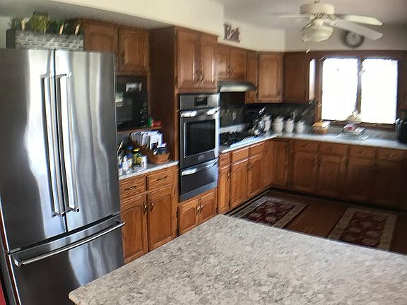 Three bedroom raised ranch nestled on 3.5 wooded private acres with attached two car garage and and insulated heated five car pole barn with attached two stall horse barn. There is an above ground pool with large deck for entertaining. Large kitchen has quartz countertops and hardwood floors into the dining room. Fireplace in living room and additional fireplace in the walkout basement family room. Beautiful views all around. Riding trails behind property. Five minutes to town and conveniently located to I-57 or I-55.