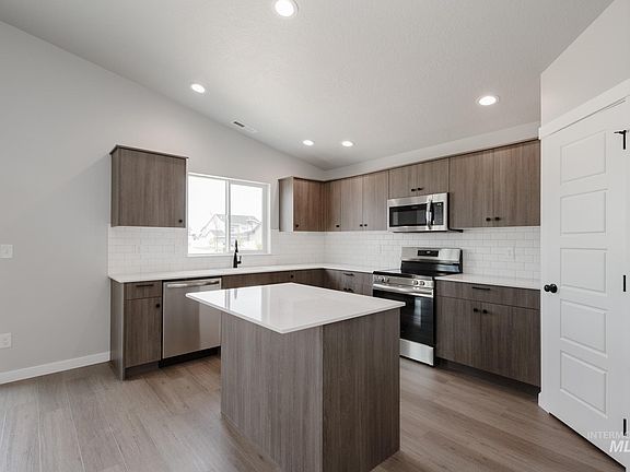 Feel enriched in your brand new home located in Nampa, Idaho! Dreams do come true in the Harrison 2025! Get the single-level home you always wanted without sacrificing any living space. The outside world will melt away while you relax in the bright & sunny living room at the rear of the home. The kitchen comes with stainless steel appliances and stylish solid surface countertops, adding both functionality and aesthetics to the kitchen. Discover an oasis of solitude in the primary suite with its enviable walk-in closet, dual vanities, and two refreshing windows. The concrete patio entices you to spend time outside so you will not miss even a moment of nice weather. With spacious bedrooms and a thoughtful layout, the Harrison offers the perfect balance of comfort and style. The dedicated laundry room adds even more convenience to your daily routine. This home is truly designed for modern living. Photos are of the actual home!