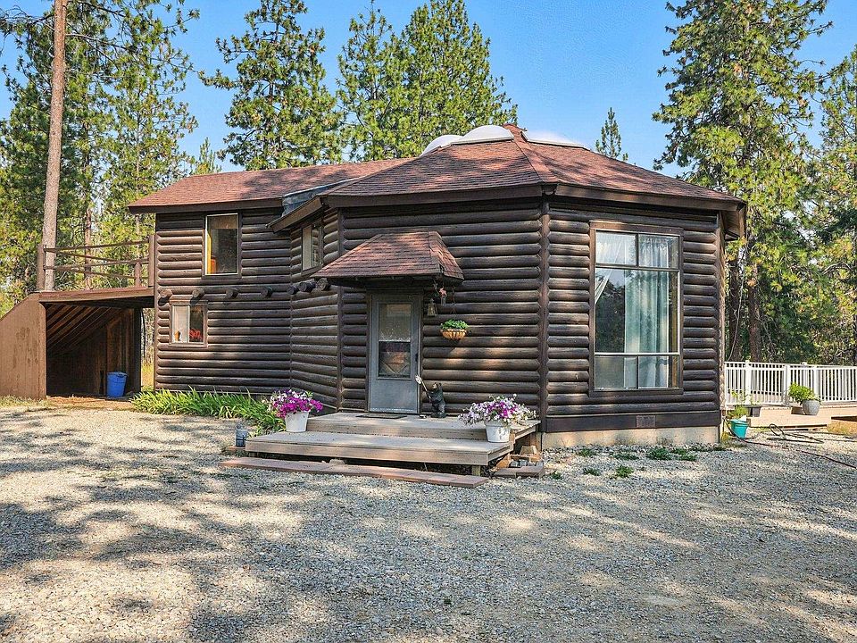 Discover 40 acres of privacy, recreation, and opportunity just 35 minutes from Spokane! This hand-crafted 1,200 sq. ft. log home features 1 bedroom, 1 updated bath, a spacious loft, open-concept living, large windows, and a cozy wood stove. Recent updates include a rebuilt front deck, new back deck railing, freshly graveled driveway, new HVAC & heat pump (2025), updated shower & vanity, and new refrigerator & kitchen sink. The property includes 27 acres of timber, 13 acres of pasture, an apple orchard, cherry trees, and a large garden area. Outbuildings include a historic log barn, large chicken coop, and a 40’x30’ insulated 3-bay garage with 220 power. Two wells provide over 40 GPM combined. Ideal as a homestead, hobby farm, horse or cattle ranch, or private retreat, with abundant wildlife and direct access to 1,200+ acres of Stimson Lumber Co. land for hunting, hiking, and exploring. Outdoor recreation abounds with Long Lake just minutes away and multiple lakes less than 45 minutes.
