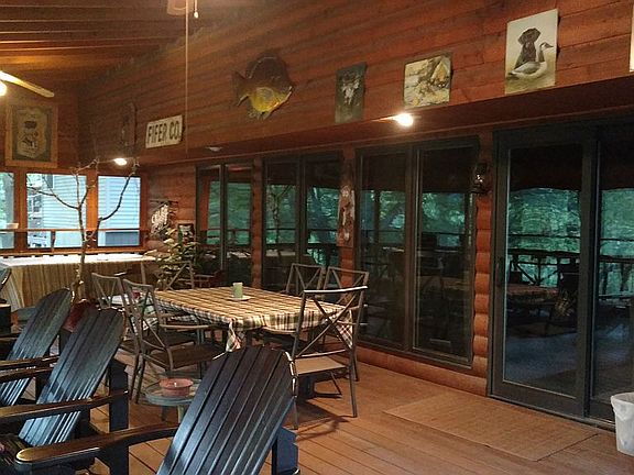 Patterson Bay is great hunting, fishing & boating. Log cabin lodge completely remodeled 2004. Wonderful back screened in deck. Decks on front & south side of home. Detached garage