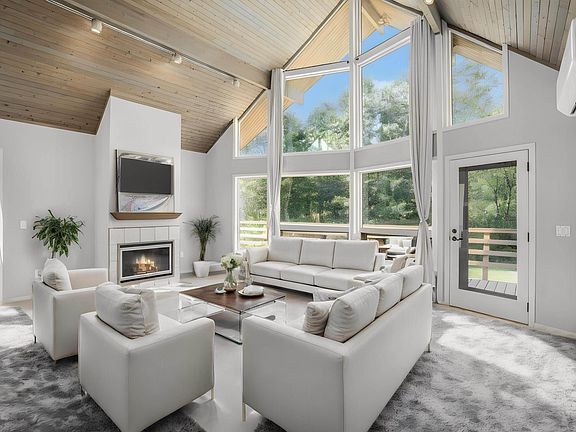 Spectacular Lindal cedar walkout, sitting in the middle of 10 acres in Texas Twp. You'll love the privacy it offers with great views from every room. It has vaulted/beamed ceilings and huge windows. The large deck is the perfect spot to entertain or sit and enjoy the wildlife. The open floor plan has a great room w/floor to ceiling windows. The large kitchen has pantry storage & mudroom access. The primary suite has a slider to a 3-Season room, a full bath, 3 double closets, shower w/steam room function & ceramic floor. The view from the loft/den area is unmatched. The walkout level has a large family rm w/a wall of windows and a door to a rear patio, 2 large bedrooms w/great great closet space, a full bth and laundry hook-ups. The home is wired for a generator. It sits far off 4th St a fully fenced backyard and paved driveway. Groomed paths have been cut throughout the property.