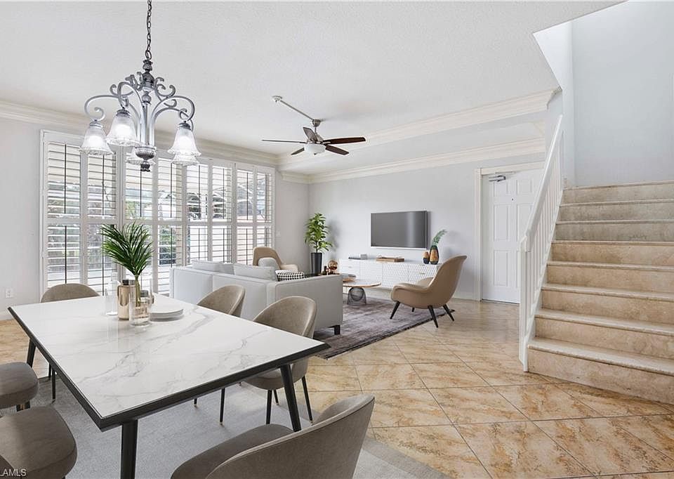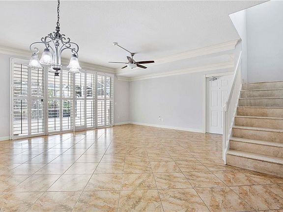 Owner's Pride!! This home was just freshly painted and impeccably upgraded with tile floors throughout both levels, marble stairs, triple crown molding, plantation shutters, granite countertops in kitchen and bathroom, new stainless steel appliances, surround sound wiring, extended lanai and cage with lake views. Poured Concrete and reinforced steel structures, The Cove is a wonderful community with low HOA fee's, a community pool and tree lined streets in the heart of North Naples. An all A School district and convenient to new plazas, restaurants and stores make this area ideal for everyone.