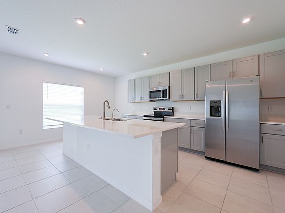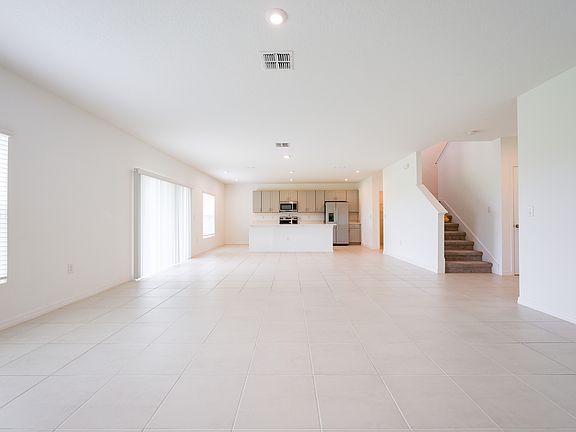 This beautiful home of the Tierra Del Sol East community is Featuring numerous designer touches and high-end upgrades throughout, this Redbud floor plan is the perfect combination of space, functionality, and style. Boasting 5 spacious bedrooms and 3 full bathrooms, this home provides flexible living for families of all sizes. The expansive open-concept layout dominates the ground floor, with a modern kitchen at one end, a bright and airy gathering room at the other, and a casual dining area in between. From there, sliding glass doors lead out to the extended-covered lanai perfect for outdoor dining or relaxing in the Florida sunshine. You don't have any neighbors at the backside of the house and it will give you the best privacy. On the first floor, you'll find a private guest suite, ideal for visitors or multigenerational living. Upstairs, the owner's retreat features a spacious bedroom, a luxurious en-suite bathroom with dual vanities, and a generous walk-in closet. Three additional bedrooms upstairs are plenty of space for family, home office, or hobbies. Located in the peaceful and desirable Tierra Del Sol East community, you'll enjoy nearby access to shopping, restaurants, major highways, and world-famous Central Florida attractions. The HOA is low and includes access to community amenities such as a pool, playground, and scenic walking trails.