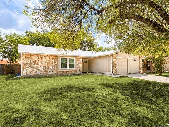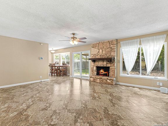 This appealing 3 bedroom and 2 full bathroom home is ready for you. Located minutes from Highway 35 and Loop 410 with shopping and restaurants nearby. Interior features tile flooring throughout this house. Spacious family room with a wood burning fireplace. A roomy primary bedroom that offers an airy size bathroom with a double vanity, his and her walk-In closets. Second bedrooms share a full bathroom with a vanity. Exterior features covered patio with fenced backyard and mature trees. Recent Updates Include HVAC System 2023, Light Fixtures, Fans and Brand-new energy efficient windows and sliding glass doors.