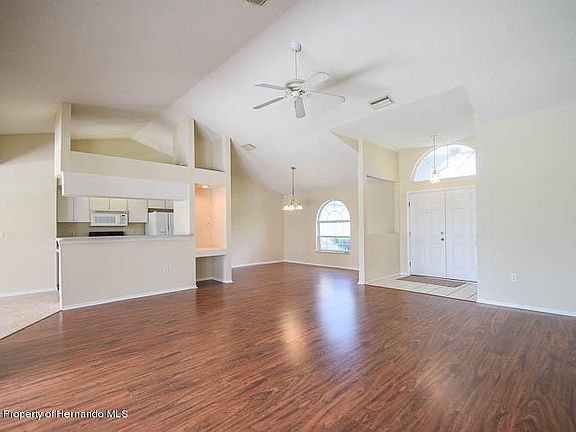 Move in ready! This lovely 3/2/2 home is situated on the Oak Hills golf course. Walk in the double door entry to a large great room with vaulted ceilings. The great room boast brand new laminate flooring. Large sliders provide a great view of the pool and lanai area! Kitchen has a eat in bar and a breakfast nook. The spacious Master Bedroom has sliders as well that overlook the lanai and pool. Split plan features 2 guest bedrooms and guest/pool bath. Indoor laundry room. Brand new carpet in all bedrooms. New paint throughout inside as well.