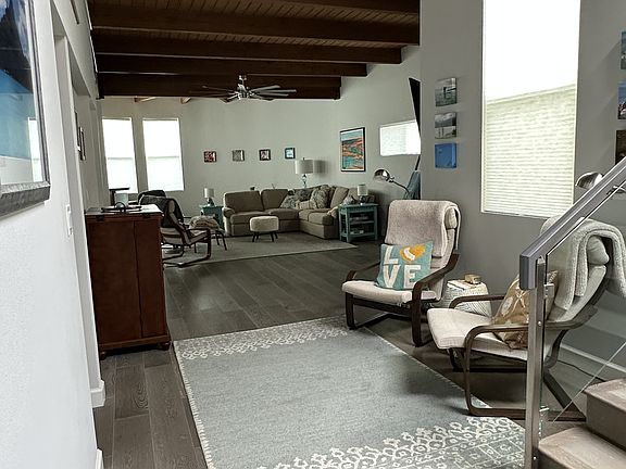 This beautifully updated beachside home in Oxnard Shores is just four houses from the sand and offers over 3,100 sq ft of living space, ocean views, and a versatile tri-level layout. The first floor features three bedrooms and a full bath, with sliding doors leading to a gated, low-maintenance yard. Upstairs, the main living area boasts a cozy fireplace, gourmet kitchen with quartz counters and stainless steel appliances, and a spacious deck for enjoying coastal breezes. The master suite includes a private ensuite bath, and the third floor offers a bonus office or den with its own ocean-view deck. Located in a quiet beach neighborhood near shops, restaurants, and the marina. Available Fully furnished or Unfurnished, Tenant responsible for utilities.