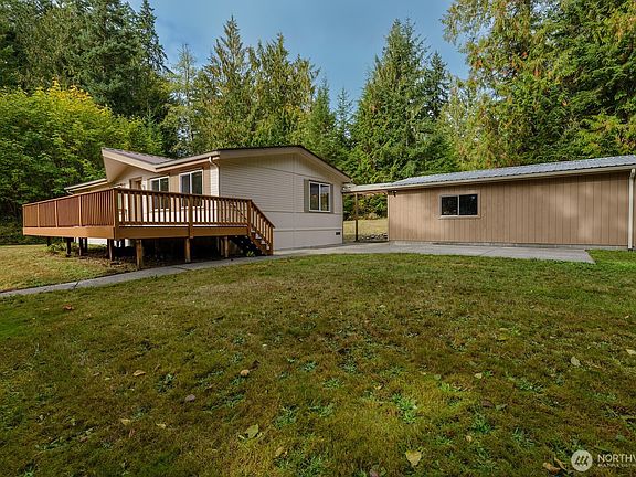 Ready to enjoy the peace and quiet of country living? Look no further than this 2 bed/2 bath manufactured home on over 2 acres. Home has approximately 1150 sq feet with an open layout and is move in ready. Huge deck in front for easy entertaining or relaxing in solitude. Covered breezeway in back connecting to detached double car garage and patio area. Fruit trees and room to garden. Wooded acreage keeps it private. Enjoy the freedom of No CC&R's and No HOA. Conveniently located close to Salt Creek Recreational Area and Crescent Beach with a short drive to both Lake Sutherland and Lake Crescent.