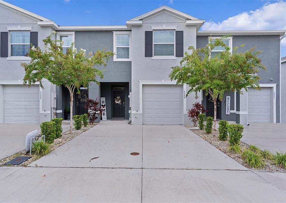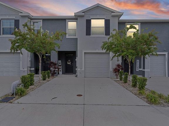 Welcome to this impeccably maintained 3-bedroom, 2.5-bath townhome, ideally located in the highly desirable Beaumont community. Step inside to discover a thoughtfully designed open-concept layout featuring soaring ceilings, ceramic tile flooring throughout the first level and all wet areas, a convenient powder room, and additional storage space beneath the staircase. The spacious kitchen is equipped with ample cabinetry, granite countertops, a breakfast bar for casual dining, stainless steel appliances, a walk-in pantry, and an inviting dining area—perfect for both everyday meals and entertaining. The primary suite offers a private retreat with dual walk-in closets, and a luxurious en-suite bath complete with dual vanities. Upstairs, two generously sized bedrooms with ample closet space share a well-appointed full bathroom and are complemented by a large linen closet and a conveniently located laundry room. Each home in Beaumont includes D.R. Horton’s Home is Connected smart home system, enhancing comfort and security. Residents enjoy a low-maintenance lifestyle with HOA and CDD fees covering roof replacement, exterior painting, common area insurance, landscaping and lawn care with irrigation, as well as access to community amenities including a pool, cabana, and centralized mail center. Situated in the heart of it all, this location offers easy access to The Villages, Brownwood Paddock Square, shopping, dining, and is just an hour’s drive to both Tampa and Orlando. Schedule your exclusive showing today and experience the perfect blend of comfort, convenience, and community living.
