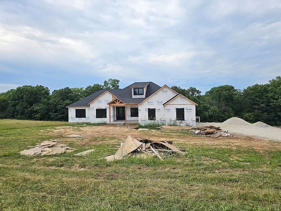 Looking for a project of a dream home to finish? Look no further. This custom build featuring 9ft ceilings in all rooms and 10ft in main living area is one you don't want to miss. Sitting at roughly 2750 sq ft, 4 bedrooms, 3.5 baths, a extra large main floor laundry, split bedroom floor plan, large master walk in closet, 3 car attached garage, full walkout basement and covered deck all on 5 acres! Rough framing is completed on the house and deck. Roof is completed. All windows and exterior doors installed (minus garage door). Plumbing ground rough is complete and concrete is poured in the basement, garage and porch! The next steps would be to start electric, plumbing rough ins and siding. Call today for more details! House is being sold as is in current construction. Additional Rooms: Mud Room