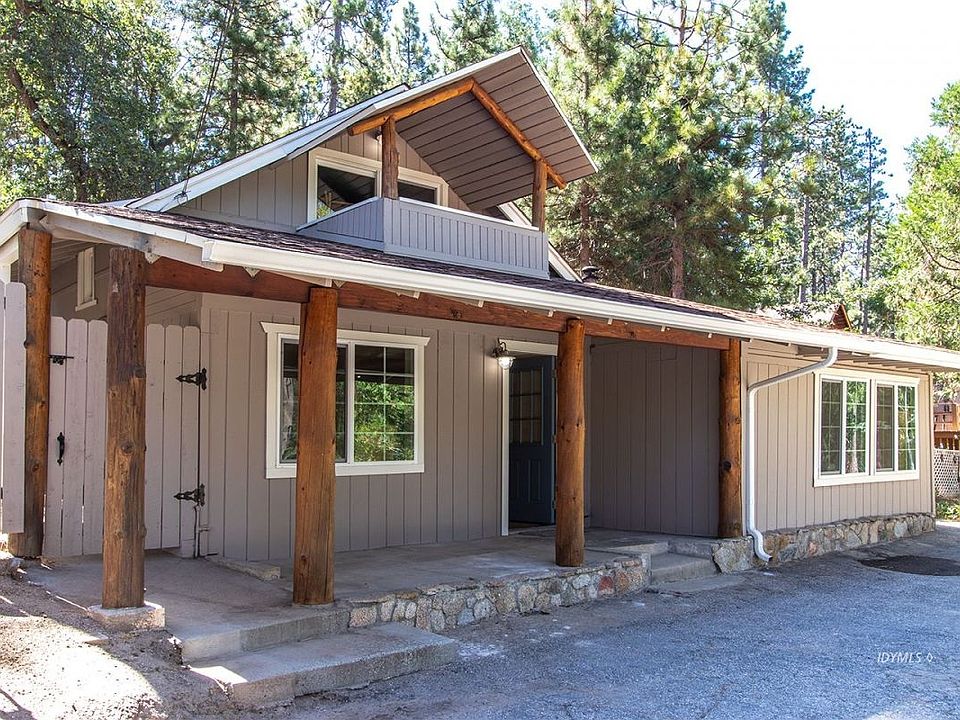 This recently remodeled vintage Idyllwild cabin is priced to sell. Located within walking distance to the Idyllwild Village and the Idyllwild Arts campus. This lovely 3 bedroom plus 2 full baths (walk-in closet in the master bedroom) has new double paned windows throughout The living room offers an attractive free standing wood burner stove with brick backing and laminate new wood floors in all the main living areas, new tile in the bathrooms and new carpeting in the bedrooms. There is also recessed lighting throughout the cabin, brand new stainless steel appliances (including refrigerator), new trendy kitchen cabinets, stacked washer/dryer, an additional ample storage room and much more. This could definitely be your forever home or a much in demand seasonal rental. Please note this house has been completely staged so none of the furnishings are included in the sale price. ADDITIONAL NOTES: This property is on sewer and there is an easement between this property and the neighbor's to the left that can be used to enter to the driveway via a much gentler slope,