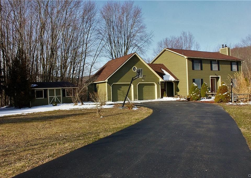 Welcome to the best piece of property on Crooked Lake! Situated at the north end of the lake, this home offers stunning views of Song Mt. through the many windows on the south side of the home. Inside you'll find 4 bedrooms (1 on the 1st floor) 2.5 baths that have all been updated, open & updated kitchen, airy dining area with vaulted ceiling & antique stained glass window. Plenty of room to entertain on the main floor or the finished walk out basement. Plenty of more space to entertain or enjoy your private back yard on one of the decks, your own trail through the woods on the peninsula or simply in your yard enjoying the views. This property offers the luxury of seclusion while being minutes from Tully & Rt. 81. Geothermal heating/cooling. Includes many updates. Pontoon boat negotiable.