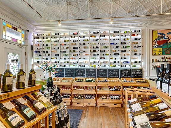 Step inside and discover a sophisticated and charming space. The store features high tin ceilings with plenty of natural light in a spacious layout that creates an inviting atmosphere for wine enthusiasts and connoisseurs. It includes a kitchen and an office space for administrative tasks.