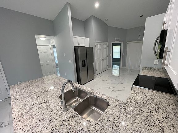 Looking for the perfect rental home? This beautifully maintained 3-bedroom, 2-bathroom home in Lehigh Acres offers a spacious and comfortable living experience in a quiet neighborhood. Step inside to an open floor plan with high ceilings and plenty of natural light. The modern kitchen features updated appliances, ample counter space, and a breakfast bar, perfect for cooking and entertaining. The bright and airy living and dining areas provide plenty of room to relax. The primary suite boasts a walk-in closet and a private en-suite bathroom with dual vanities and a walk-in shower. The additional bedrooms are generously sized, ideal for guests, a home office, or a playroom. Enjoy Florida's warm weather in the large backyard, perfect for outdoor activities or simply unwinding. The home also includes a two-car garage and a laundry area for added convenience. - Annual Lease - Tenant responsible for utilities - Available for immediate move-in - Pet-friendly - Lawn care included