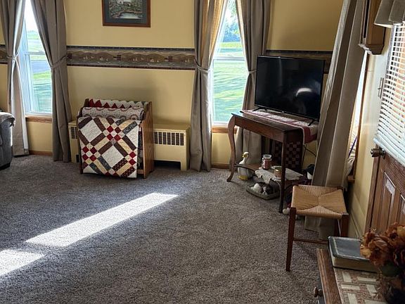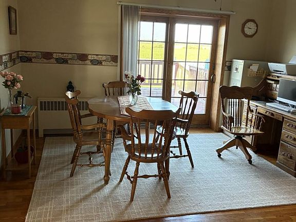 If you're looking for a nice clean home, without having to do anything, this is it. Home has been remodeled and ready for it's new owner. Hardwood floors in the dining room & main floor bedroom, Living room is carpeted, Bath and Kitchen is has Lino. Stairway leading to the 2nd level is carpeted as well as the entire 2nd floor, the 2nd floor consists of 1 bedroom now, but had 2 bedrooms previously, so it could easily be changed, also the 2nd level has its own air conditioning unit with an outside pump and condenser. The 1st floor has a window air conditioner unit. There's an 8x26 covered front porch with a cement floor off the living room, the dining room has a patio door leading the to the 14.5x16 deck and the fenced yard. There's oak trim thru-out the 1st level. The rear 7x10 entrance leads to the basement and the kitchen. The 2-car garage is finished and insulated, the 28x14 shed has a loft for extra storage with a stairway, and the 5x8 multi use shed, all buildings have steel roofs. New well pump in 2023, reverse osmosis also included, the 12 ft wide driveway was done with commercial grade blacktop.