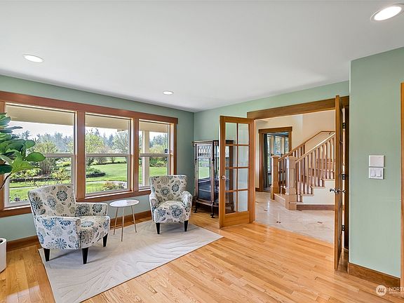 Nestled in a quiet & peaceful location - this one owner custom home is perfect for those seeking private country living minutes from conveniences. You will be welcomed in by a lush & stunning 5.17 acre gardener's flowering paradise. The backyard hosts a pond, gazebo & outdoor entertaining spaces. 3789 sq ft of spacious living w/ natural light, large kitchen, 2 primary suites, +2 beds, 3 full & 2 1/2 baths, +office/library +den +large crafting/flex space design which makes it easy to entertain, or simply relax. Comes complete w/ 60x40 versatile shop/pole outbuilding 2 RV bay, 3rd bay insulated & heated, 3 car garage, fruit orchard, & potential garden space. This home is very well thought out w/ much pride in ownership.