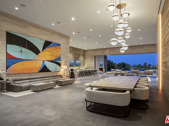 Walled, gated and mega private, this new trophy estate is the largest single story ever built in the prestigious Madison Club. Spanning approx. 15,825 SF under roof (approx. 11,685 under A/C) and located on the south part of Ross Ave. amongst the most substantial estates in this world-class golf club. Featuring a smart open floor plan, designer perfect finishes and furnishing throughout, state of the art technology and the highest level of construction. Master suite with many indulging areas boasting approx. 3,000 SF with all the luxuries and amenities, guest wing "apartment" with a separate entrance, kitchenette and patio totaling approx. 1,200 SF, 2 additional pampering guest suites with kitchenettes, fire places and dedicated parking and a special 4-Queen "Coachella suite" that ups the bed count to a total of 8. Jaw-dropping 100 foot glass zero edge pool spills into the explosive and panoramic triple fairway water views framed by a beautiful mountain backdrop.