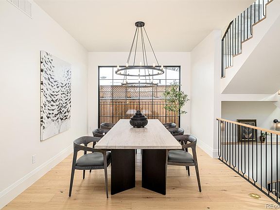 Discover contemporary, luxurious living in this stunning new build nestled in historic Hilltop. As you walk through the front door, you will notice the exceptional light streaming through the windows and natural flow throughout the home. Thoughtfully designed to blend modern elegance with timeless charm, this home features exceptional architectural details, wood flooring and expansive living spaces. The heart of the home is a gourmet kitchen with a vast center island, a walk-in pantry, luxury paneled appliances and a bright dining nook with built-in bench seating. The main floor also hosts an inviting living area with a striking fireplace and built-ins. The main floor bedroom includes a thoughtful additional ensuite bath and can equally be used as an executive office. Upstairs, retreat to the exquisite primary suite boasting a spa-like bath with a soaking tub, oversized walk-in shower, dual vanities and stunning tile finishes. As you head downstairs, notice the unusually wide staircase to the finished basement which offers a spacious family room with a wet bar — perfect for entertaining. The additional media room/movie room is a wonderful bonus. A large bedroom and 3/4 bath in the basement completes the space + storage galore. Enjoy Colorado living in the private backyard with a covered patio, pre-wired for heat. Set on a generous lot with a detached 3-car garage and just moments from Steck Elementary School, 9th & Co and Cherry Creek North, this home offers the best of city living.