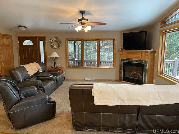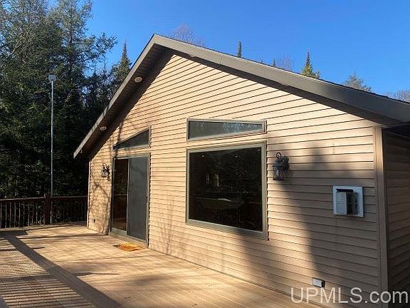 MICHIGAN CARDINAL RED ROAD WATERFRONT HOME/CABIN FOR SALE! This beautiful home is located in west-central Marquette County, in Michigan's Upper Peninsula. The wooded parcel is 1.18 Acres in size and has 180 +/- feet of frontage on Lake Michigamme. This "All Sports Lake", is one of the largest Michigan lakes. The lake is over 70 feet deep, and covers 4,292 acres in Marquette and Baraga Counties. The lake is about 6 miles east to west, with an arm extending about 4 miles south. A dam separates the Michigamme river from the lake at the end of the southern arm. The Spurr river flows into the lake's west end and the Peshekee river flows into the lake in the north east. Van Riper State Park and Van Riper beach are located at the eastern shoreline of the main arm. The lake is speckled with 27 picturesque islands, lots of wind-swept bays, points, narrows, and rock beds to boat around. Boating, sailing, swimming, and water skiing are popular on Lake Michigamme, and it is a U.P. "Fishing Destination". Common fish include Brook and Lake trout, Smallmouth Bass, Muskies, Northern Pike, Walleye, Perch, Rock and Smallmouth Bass, and even Whitefish in the deeper parts. There are nice swimming beaches at the Van Riper State Park on the eastern end of the lake, and at the Township-owned park located on the west shore. Hikers and Rock Hounds also explore the massive mineral outcroppings found about the lake. This area is also known for western Marquette County Snowmobiling and Cross-County Skiing opportunities - Snowmobile Trail 8 is minutes away. The Village of Michigamme borders on the west end of the lake, where you can find shopping for clothing, fine art, and local crafts - and there is dining, fuel and groceries available nearby. This area is a very popular destination for many generations of families and sports persons, and is rich in pioneering, logging, and mining history! Craig Lake State Park, Van Riper State Park and the McCormick Wilderness are minutes away for hiking, fishing, and views of moose. The custom Wisconsin Home was built in 2000, the Main Level of the home has a large, bright open concept Living, Dining, Kitchen area. This opens via large patio doors to a large upper level Deck that faces the water, then wraps around the side of the house to the Main Entrance. Going toward the back of the Main Floor are a Utility Room with doorway to an exterior walkway that leads to the driveway, and a Full Bathroom. Further down the hall are three bedrooms. The Main Bedroom has its own private bath. On the Lower Level is a Den with walk-out to the area beneath the Deck, where a hot tub is located to take advantage of the lake views. This level shares a fourth bedroom, and areas for storage, and the mechanicals for the building. A system of walkways leads from the home to the lakeshore where an Artists Cabin is located, along with a large campfire ring made of boulders. The bay is protected by two nearby... Continued In Addendum