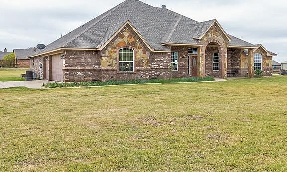 Located in highly desirable Remington Park Estates, this beautiful brick & stone home sits on a corner acre plus lot. Upon entering you'll notice the spacious open floor plan with wood-look tile flooring throughout. No carpet here! Beautiful mill work to accent the lovely kitchen with large breakfast bar overlooking the living area. Huge 18x20 bonus room with many options for use- could easily be media, game room or second living. Isolated master is a true retreat. The oversized walk-in closet can accommodate any wardrobe! The spa-like master bath affords amenities including garden tub, separate shower, double sinks & vanity! Spend cool evenings by the outdoor wood-burning fireplace enjoying country living.
