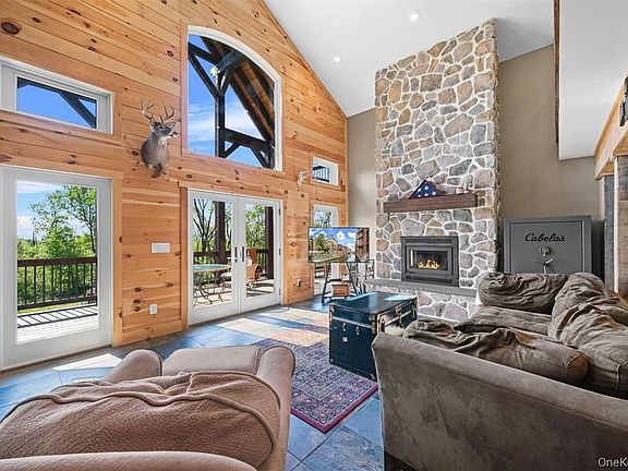 Looking to Enjoy Life? Experience 535 Ct Rt 22 in the Minisink School District. Unique Handcrafted Home that is surrounded by Nature and Privacy. This Amazing property is backed up to a NYS Protected Conservation in addition to the existing 21 1/2 Acres of Privacy. Gorgeous Breath-taking views can be seen from almost every window of the home. Enjoy the Dramatic, Sundrenched, Eye Popping Open Floor Plan starting in the Great Room that offers stunning views of the Mountains, beautifully handcrafted beams, Recessed Lighting, Hand cut Stone wood burning fireplace. Dining Room large enough to entertain any dinner party. Designer Chef's Kitchen that any Chef would love cooking in. This very convenient kitchen offers handmade crafted cabinetry, Granite counter Tops, Professional grade Stainless Steel Appliances which includes a 6 Burner, griddle, dual oven gas stove, dual refrigerator that gives you the convivence of switching the refrigerator to a freezer. Either one or both. TWO Center islands. One which includes a sink for prepping and the other for serving .... Cooking is a Dream in this Kitchen. Private Office with separate entrance and views. Lavatory, Mud Room, Laundry Room. First Floor Primary Bedroom suite is designed for Royalty! Relax in the spacious suite by enjoying the custom-built stone Fireplace, Spa Bathroom that would rival any spa. Soak in the Deep Soaking Tub, Shower in the 2 Person oversized Shower that features Imported tiling, multiple body sprayers, shower heads and custom-made glass doors. Stunning vanity, and tiling and walk in closets. Private deck off the suite to enjoy the view and your favorite beverage. 2 Nd Level offers 2 very large bedrooms each having their own balconies to enjoy the Beautiful Mountain view and Privacy. Each Bedroom offers lots of closet space and additional storage. Beautifully designed main bathroom. Full Walk Out Lower Level that can be finished off into another Additional 2185 Sqft this space is wonderful for a Multigenerational living area or additional Family / Living area. Roughed in Plumbing is there, Let your Imagination Run wild. Blacktop Driveway. Detach Garage. This is the perfect Home if you want to relax and get away from the Hustle and Bussle of everyday life. This is a Quality Hand Built Home with the Finest materials and Finishes. Must see to really appreciate the workmanship and quality. 1/4 to School, 4 Miles to Shopping and all Commuting routes.