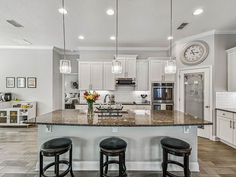 Welcome to 535 Crescent Key Drive — the perfect retreat or relocation-ready home in beautiful St. Augustine, FL. This elegant 4-bedroom, 3.5-bath single-story residence offers nearly 2,800 sq. ft. of stylish living with a 3-car garage and a new roof (2023). A standout feature is the rare mother-in-law suite, complete with its own entrance, kitchenette, private bath, and living area — ideal for multi-generational living, guests, or extended stays. The main home features an open layout with a gourmet kitchen boasting double ovens, granite counters, and a large island overlooking the spacious living and dining areas. Telescoping sliders lead to a screened lanai with pavers and a firepit, offering tranquil views of the private conservation area. Luxury touches include porcelain tile flooring, crown molding, tray ceilings, and a spa-style primary suite with a soaking tub, walk-in shower, and dual vanities. Located in Crescent Key, a community offering resort-style amenities—clubhouse, fitness center, and pool—just minutes from the beach, historic downtown St. Augustine, and I-95 for easy access to Jacksonville or Daytona. Whether you’re relocating or seeking a second home, this move-in-ready property blends comfort, privacy, and convenience in one exceptional package.
