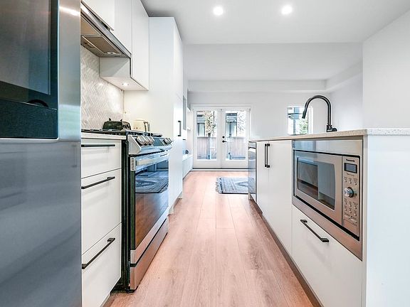 Bonus: No GST + second parking with EV charger! This one-year-old, beautifully maintained 4 bedroom townhome ( 4th bedroom doesn't have closet) at The Trails in North Vancouver’s vibrant Moodyville community features custom millwork, radiant in-floor heating, and premium Samsung Smart Hub appliances. The bright den with a window is perfect for a home office or playroom, while the open layout fills with natural light and offers a partial water view. Upstairs, a spacious private roof deck provides a perfect spot to relax or entertain. Secure underground parking and a storage locker are conveniently located right beside the entrance. All just minutes from Lonsdale Quay, shops, trails, and the waterfront.