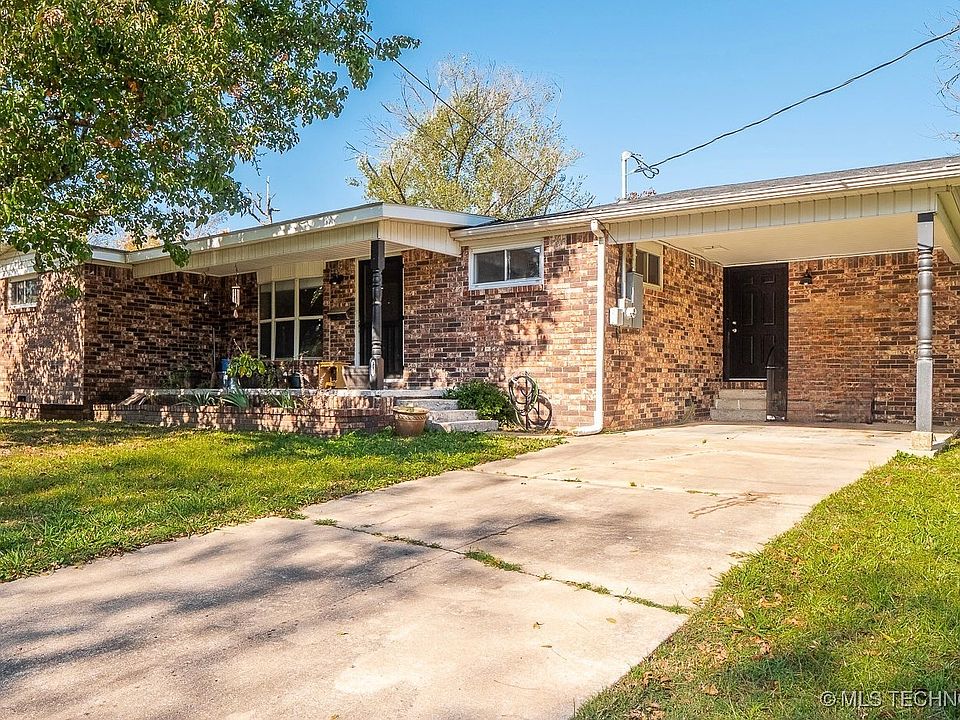 This well-kept 3-bedroom, 2-bath brick home sits on a large, fenced corner lot and is full of warmth and charm. The spacious covered front porch welcomes you in, and the double carport offers convenient, covered parking. Step inside to find a bright, cozy living area with a combined dining space and stylish modern lighting throughout, including can lights in the kitchen. The kitchen offers floor-to-ceiling cabinetry with a pantry-style setup for maximum storage, complemented by beautiful Formica and butcher block countertops. Stainless steel appliances remain, and the mix of colors and textures gives the space plenty of character. The laundry room is just off the kitchen and also doubles as a pantry area, with direct access from the carport for easy entry. Both additional bedrooms are nicely sized with ample closet space. The hall bath is stunning—featuring double sinks, a tiled bathtub surround, and a modern design. The primary suite is a true retreat with its spacious layout, double sinks, beautifully tiled walk-in shower, and generous walk-in closet. Outside, you’ll enjoy a large, fenced yard that provides both privacy and room to play—all while being conveniently located in town near amenities. Major updates include a new roof and HVAC system, both installed within the last two years. This home has been very well cared for and is truly move-in ready. Schedule your private showing today—this gem won’t last long!
