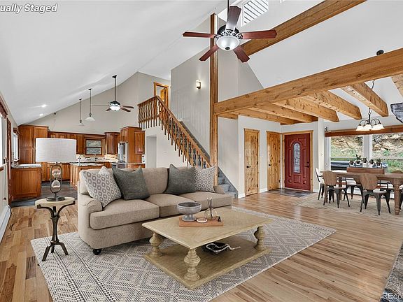 Welcome to your stunning mountain retreat in the highly sought-after Saddleback Ridge Estates community of Evergreen! Set on over 2 acres of serene Colorado beauty, this exceptional home offers sweeping valley and mountain views from the expansive front deck—perfect for enjoying your morning coffee while watching the sunrise over the peaks.