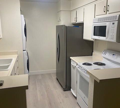 Unit was recently remodeled with a brand new dishwasher and has a large in unit Whirlpool washer and dryer, Whirlpool refrigerator ( with ice and water filter) Brand new carpet with laminate flooring in kitchen and bathrooms. Two separate garage parking spots each with its own storage and a separate bike storage locker. Small new gym and large beautiful community deck with 360 degree views great for entertaining, checking surf and seasonal fireworks!
