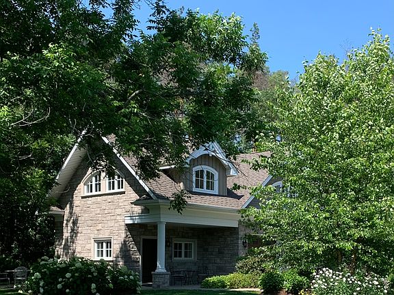 The beautiful open living space has hardwood floors, a cozy sitting area with picturesque windows of garden, wood and lake views. The kitchen is fully equipped with upscale Corian countertops, a Wolf induction cooktop, toaster oven and convection/microwave. There is a laundry room, central vac, and BBQ and outdoor furniture on the patio. The home has air conditioning and natural gas radiant heat. Bell Fibe 1-Gbps unlimited internet is included with Fibe TV available.