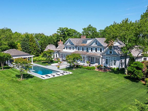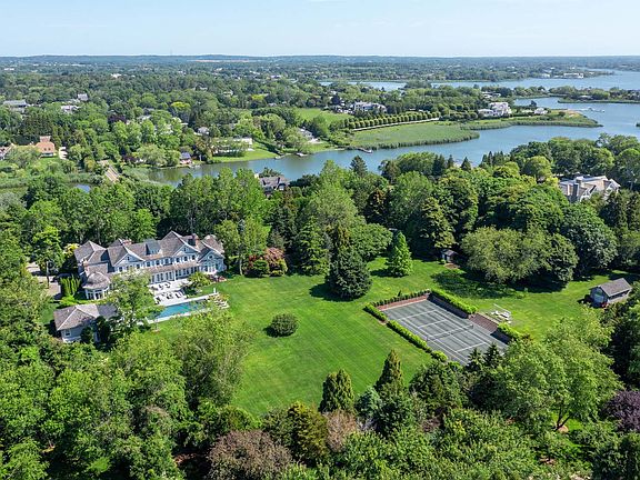 Nestled on 4 private acres+/- rests this gated compound featuring 12 bedrooms, 12 full and 2 half bathrooms in totality, an 8,257 SF+/- main residence, a 2,000 SF+/- guest cottage, pool house, heated gunite pool and spa, sunken tennis court, half basketball court and sprawling lawns. Ideally located in Water Mill South, 535 & 553 Flying Point Road is situated 1 mile+/- from Flying Point Beach, and in close proximity to Southampton's Main Street.Renovate or rebuild, the 2.1-acre second lot is capable of yielding a significant legal guest housewith expansive grounds.