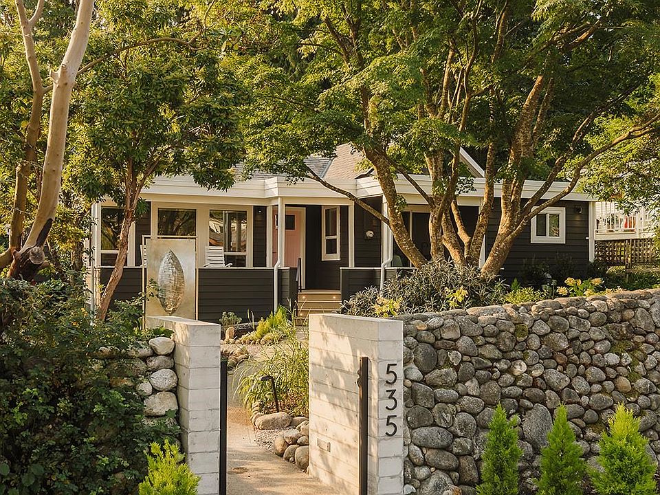 "Magnolia Cottage". Discover the sweetest contemporary cottage in Lower Gibsons.Behind the original stone fence and lush gardens lies a beautifully completely renovated retreat, blending charm with modern comfort. This 2-bedroom home has been thoughtfully updated inside and out, offering easy, elegant coastal living.Entertain on the spacious private patio with overhead heaters, a gas fireplace, and room for long table dinners with friends and family. Just steps from shops, restaurants, the public market, marina, and sandy swimming beaches, this home boasts one of the best walk scores in Gibsons. Whether you’re seeking a weekend getaway or a permanent retreat from city life, Magnolia Cottage is turn-key, waiting for you to come for the weekend and stay forever! Bonus* Gibsons Aquifer water!