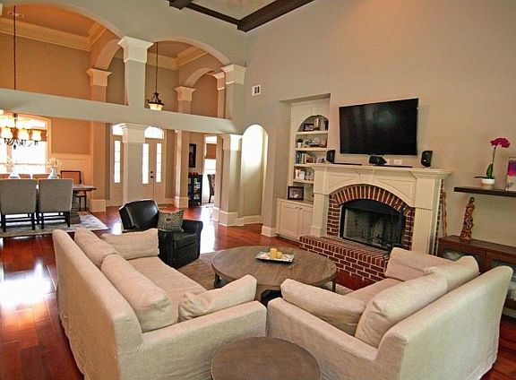 Resort style living at home! Beautiful inside and out! Split bedroom Ranch with 4th Bedroom/Bonus Room + Bath upstairs. Gorgeous home features 10 plus foot ceilings on main, hardwoods throughout main, Great Room with fireplace and custom built-ins, coffered ceiling and vaulted ceilings, Gourmet Kitchen with stainless appliances, granite countertops, tile backsplash, desk & pantry! Fabulous, professionally landscaped, fenced back yard with pool, hot tub and full outdoor kitchen with outdoor fireplace and covered patio. Covered wraparound front porch. Irrigation system.
