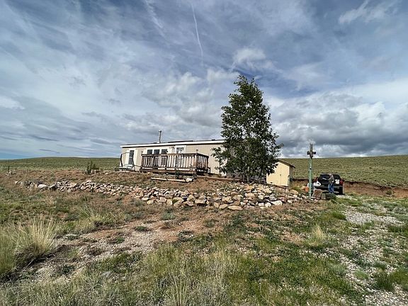 AFFORDABLE HOME ON LARGE ACREAGE! Located on 9 pristine, fully fenced acres with gate. Secluded with vast mountain views in every direction! Well maintained home with an open floor plan and large windows throughout. Kitchen includes a propane refrigerator, space for a dishwasher & W/D hookups. Keep cozy & warm with wood stove and propane generator for forced air heating. Private master bedroom/bath. Plenty of area fishing...Tarryall, Eleven mile, Antero or S.Platte River! The perfect get away!