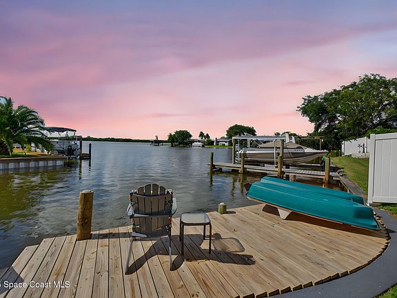 Rare waterfront gem on Sykes Creek with direct access to the Banana River & Atlantic Ocean—watch dolphins & manatees from your own backyard! Listed below appraised value, this 3BR/2BA home sits on a spacious corner lot with private dock. Freshly painted exterior (2025), fenced yard, and a detached 2-car garage. Inside features terrazzo floors, granite kitchen countertops, stainless steel appliances (2025), and updated baths with new fixtures. New roof (2025), AC (2025), and water heater (2024). Enjoy a renovated patio with pavilion and paddle boat for water fun. Located in desirable Floral Park with no HOA, this home offers true Florida coastal living—relax, boat, and explore right from your backyard. Schedule a showing today!
