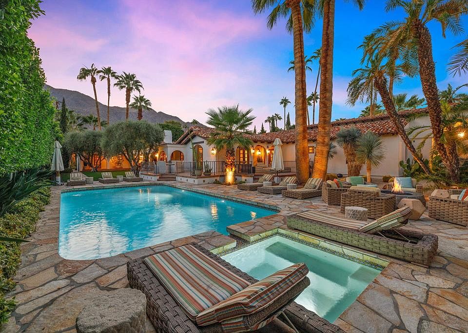 Experience timeless Palm Springs luxury reimagined for modern living in this Spanish Hacienda, located in the prestigious Old Las Palmas neighborhood-- one of the city's most iconic enclaves and home to legendary estates. This property neighbors Liberace's famed Palm Springs residence and also neighboring Clark Gable's historic desert retreat, placing it among some of the most storied homes of Hollywood's Golden Age.This estate had undergone decades of fragmented updates before being completely re-envisioned by acclaimed Laguna Beach designer Sheldon Harte of Harte Brownlee & Associates. Harte masterfully unified the home--once a disjointed ''Frankenterior''--into a cohesive, romantic, and luxuriously livable Spanish retreat designed for multigenerational enjoyment.Spanning nearly 5,822 sq. ft. on a single level, the residence features 6 ensuite bedrooms, including an opulent primary suite with a walk-through closet, rain shower, and a hand-carved marble soaking tub. A private 2-bedroom casita with its own entrance provides ideal accommodations for guests or extended family.Elegant formal rooms flow effortlessly into warm, inviting spaces, including a stunning chef's kitchen with a massive island, Thermador appliances, and an adjacent bonus/billiards room perfect for hosting gatherings of all sizes.Set on a gated corner lot of more than one-half acre, the landscaped grounds--designed by renowned landscape architect Marcello Villano--offer true resort living with mature gardens, a sparkling pool, outdoor fireplace, built-in BBQ, life-sized chess set, a 4-car garage, and a spacious gated motor court.All of this is just a short walk to the heart of Downtown Palm Springs, with its vibrant dining, shopping, and nightlife -- including the brand-new Thompson Palm Springs hotel, its curated retail, and elevated restaurant offerings just minutes away.A rare Old Las Palmas masterpiece, this estate blends historical significance, modern luxury, and an unbeatable walkable location in the most coveted neighborhood in Palm Springs.