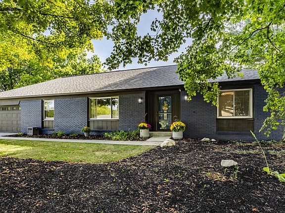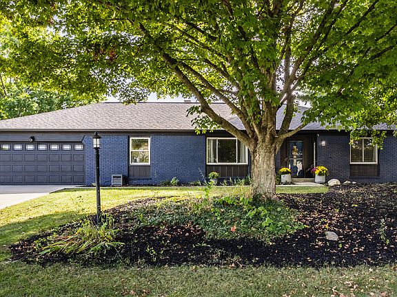 Situated in Zionsville on over half an acre with mature trees, this single-story brick home combines charm, space, and comfort inside and out. Step inside to a bright entry-way that opens to the living room. The crown molding and rustic beam accents create an open and welcoming feel. A second living space with a cozy fireplace offers the perfect spot to gather and unwind. The kitchen is a true centerpiece with granite countertops featuring bar seating, double ovens, shaker cabinets, and a stylish backsplash. A tray ceiling elevates the space with extra character. Four comfortable bedrooms and two and a half baths provide plenty of room for family and guests, including a private primary suite with a beautifully tiled walk-in shower, large closet, and access to the back patio. Out back, a large fenced-in yard and inviting patio extend your living space outdoors, perfect for entertaining or enjoying quiet evenings at home. On the side, you'll find a generous parking pad with a basketball goal. Located in the highly sought after Zionsville Schools, including Pleasant View Elementary, Zionsville Middle School, and Zionsville Community High School.