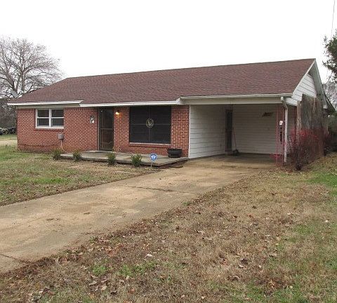 Looking for a brick home in the city limits for under a 100K? This two bedroom, one bath brick home is built on a slab, has hardwood and vinyl flooring, approximately one year old roof, gas heat, city water and city sewer, high speed internet and cable available, covered back porch with a partially fenced back yard, storage shed and an attached carport. Kitchen appliances along with the washer and dryer stay with the home.