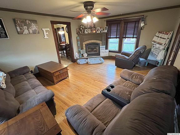 Check out this great 3 bed, 2 bath, 1 1/2 story home. You will find 2 large bedrooms upstairs with a 1/2 bath off of one of them and a large common room connecting the 2 bedrooms. The 3rd bedroom is located in the basement and has an egress window with a 1/2 bath. Main floor features a gas fireplace in the living room, laundry area, full bathroom with heated floors. Outside has a nice large 1,000 sqft garage with parking area and a finished side with a nice kitchenette. There is a lot of wonderful amenities with this home. Come see all this home has to offer!