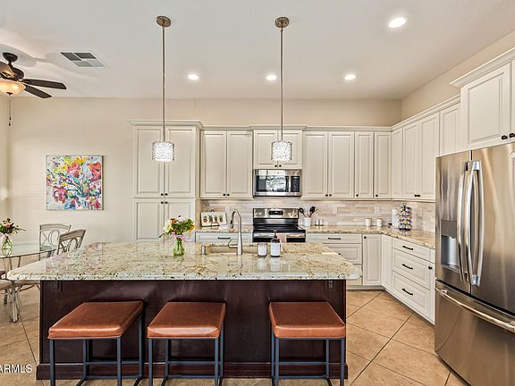 Beautifully remodeled! single-level home in highly sought-after Finley Farms! This stunning property features a fully remodeled kitchen, freshly renovated bathrooms, and a private play pool with water feature—the perfect blend of comfort, style, and outdoor enjoyment. Located on a cul-de-sac, corner lot with excellent curb appeal, this meticulously maintained 4-bedroom, 2-bath home is truly move-in ready.