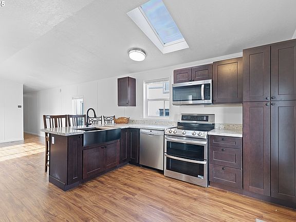 Low Park rent- $840 a Month. This 1994 home has been well taken care of. Owner had to relocate due to work. Home includes stainless steal appliance. Double pane vinyl windows, laminate plank flooring throughout. Washer & dryer. Extra deep kitchen sink with beautiful dark wood cabinets lots of counter space with a breakfast bar and stools that stay with the home. Primary bedroom has a sliding glass door with deck. This is a MUST SEE and will not last long!