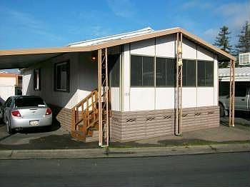 Just perfect for a Senior who likes an enclosed front porch and room to spread out. Freshly shampooed Berber carpets, and clean unit. 2 large bedrooms, 2 bath, roomy living room-dining room combo with high ceilings,laundry area off kitchen. Clubhouse with inground pool. North Santa Rosa location near, restaurants, shops, and Kaiser. Low space rent with rent control. Low maintenance yard. Now at half the price originally listed. This is a deal!